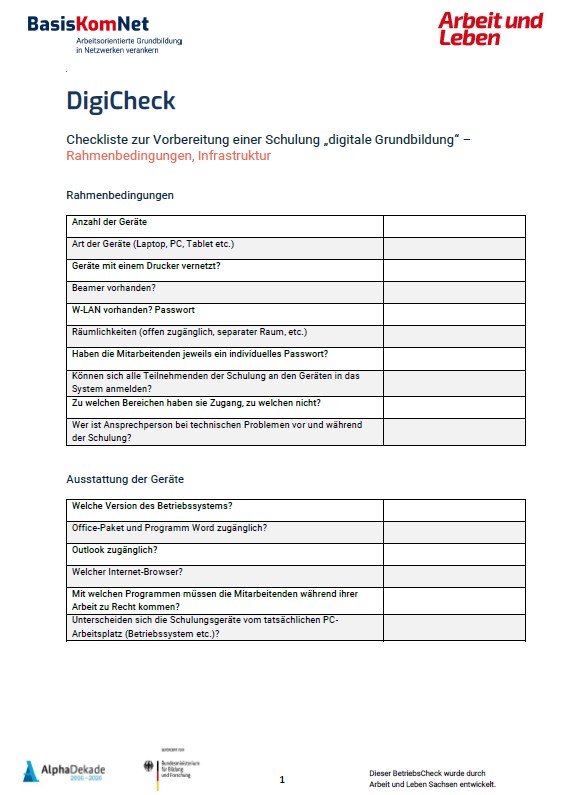 Der BetriebsCheck und der BasisKompetenzCheck sind Instrumente zur Bedarfsermittlung im Vorfeld einer Grundbildungsmaßnahem im Betrieb. Zielgruppe sind sowohl die Verantwortlichen im Betrieb als auch die Beschäftigten selbst.